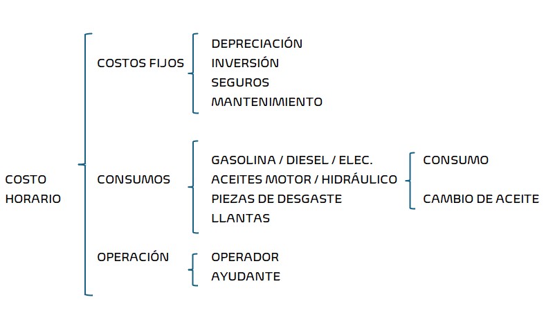 El costo horario directo por maquinaria o equipo de construcción es el que resulta de dividir el importe del costo horario de la hora efectiva de trabajo entre el rendimiento de dicha maquinaria o equipo en la misma unidad de tiempo, de conformidad con la siguiente expresión: